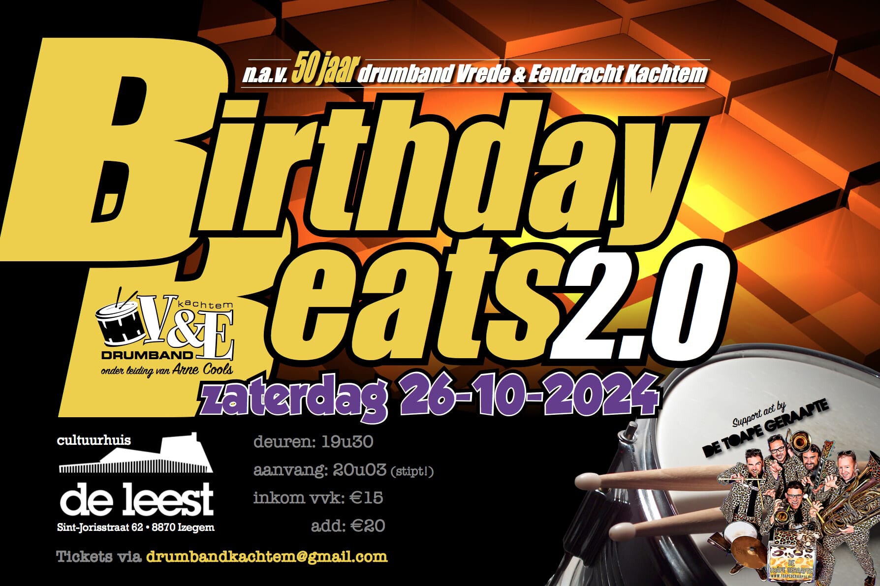Gelieve het bedrag over te schrijven naar rekeningnummer BE21 0882 8484 1303 en hierbij je naam, het aantal kaarten en het evenement te vermelden in de mededeling a.u.b.